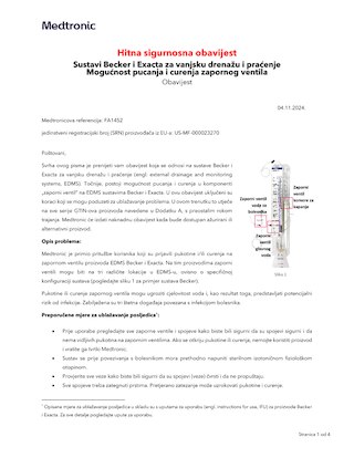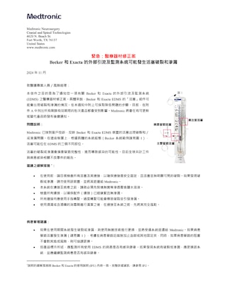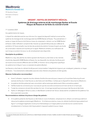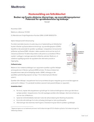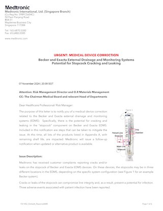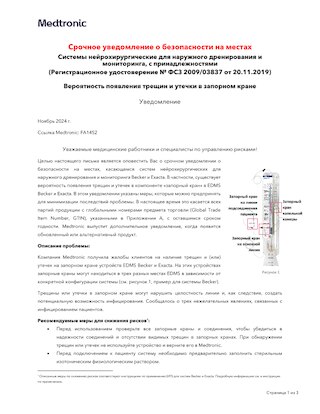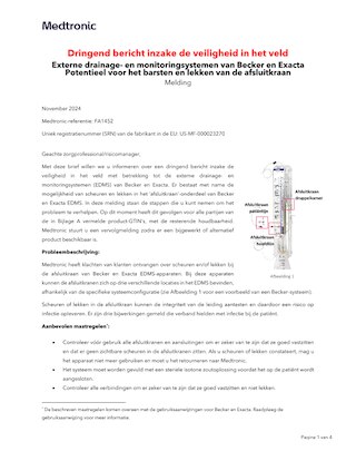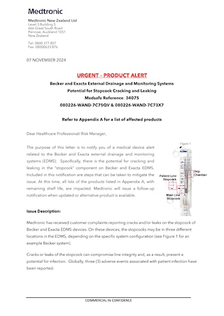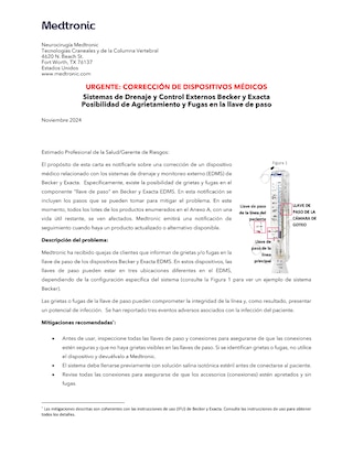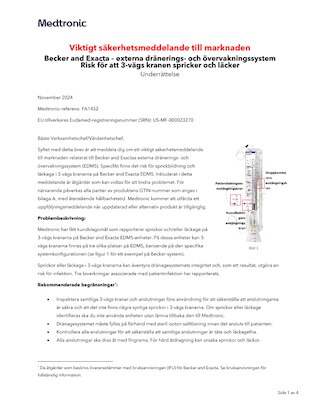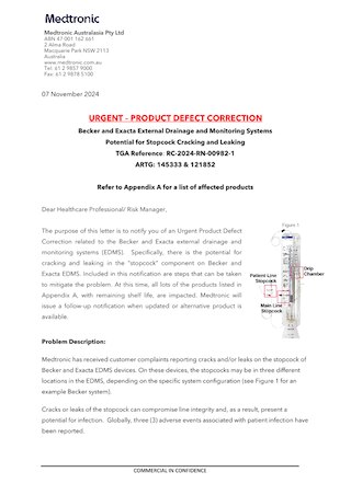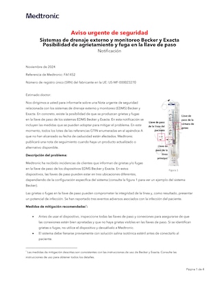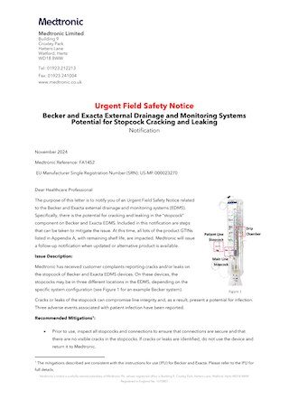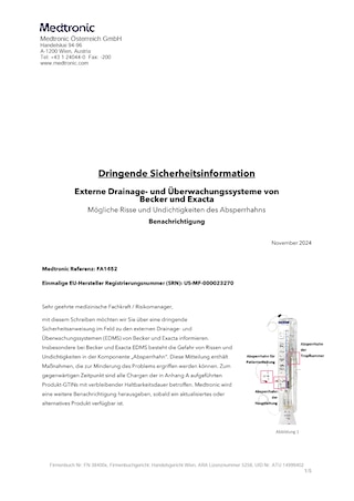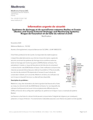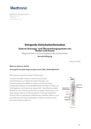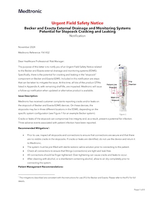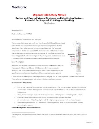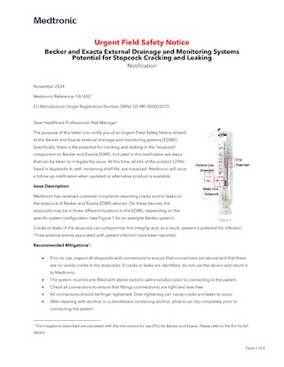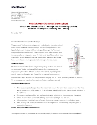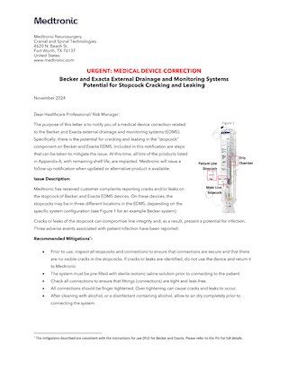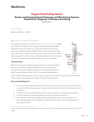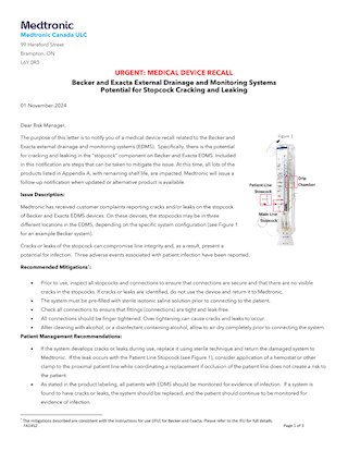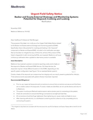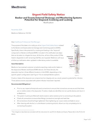 Becker and exacta external drainage and monitoring systems potential for stopcock cracking and leaking