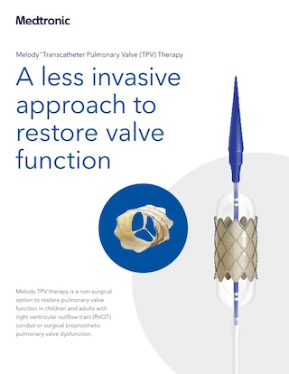 The Melody™ TPV was the first transcatheter valve commercially approved. Since 2006, it has benefited more than 18,000+ patients globally. TPV replacement with the Melody™ valve has proven to be a safe and effective treatment for patients with RVOT conduit or surgical valve dysfunction.