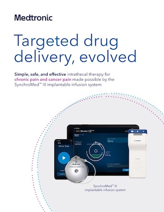 <p>SynchroMed™ III is an implantable drug delivery system that helps manage chronic pain, cancer pain, and severe spasticity.</p>