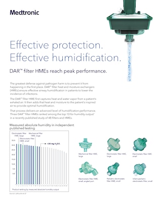 <p>The DAR™ mechanical filter HME helps protect against cross-contamination while minimizing heat and moisture loss from patient airways.</p>