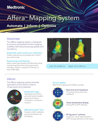 <p>The Affera™ mapping and ablation system empowers physicians to accurately map and safely ablate with all-in-one HD mapping and dual-energy functionality.</p>