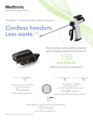 - Based on internal test report RE00329878 rev A, Marketing evaluation of surgeon experience using the Sonicision™ 7 curved jaw cordless ultrasonic dissector. April 14–15 and 20-22, 2021.