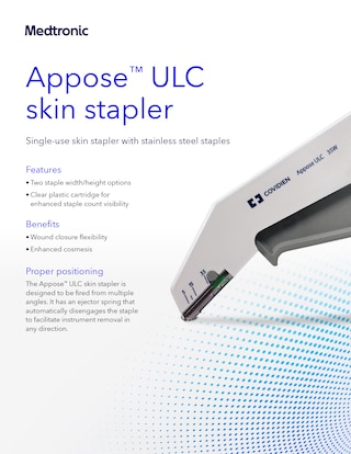<p>Appose™ single-use skin stapler is designed to dispense one staple each time the instrument trigger is activated.</p>