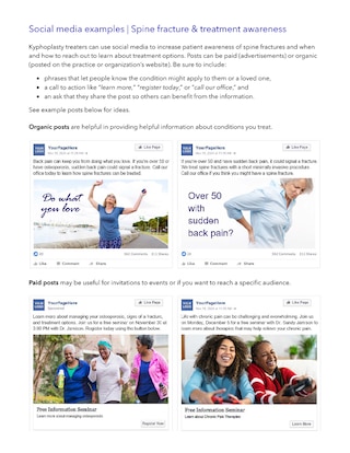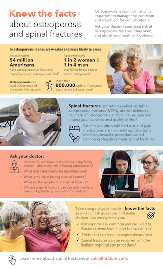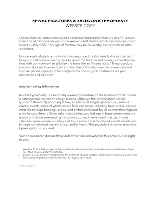 These media kit tools are available for use in practice marketing to increase awareness and educate patients about the prevalence of vertebral compression fractures (VCF), the associated health risks, and the Kyphon™ balloon kyphoplasty procedure.