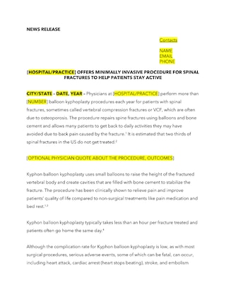 Use this template to write a press release for your practice offering balloon kyphoplasty.
